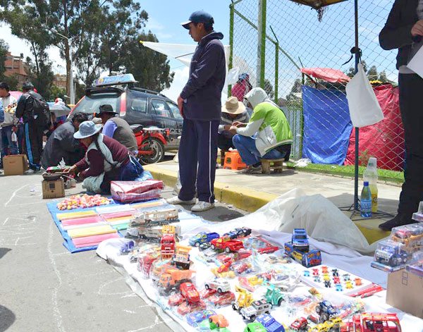 Antonio Zarzuri, Ekeko, representante del suyo Ingavi: “La verdad es que tenemos que pensar en cosas tradicionales, como los juguetes en maderita, rescatar de las llantas viejas, no hay que fomentar eso del plástico que contamina”.