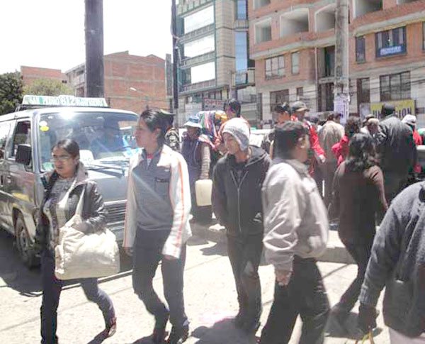 La avenida 6 de Marzo es también lugar donde los conductores del servicio público pretenden hacer uso de una terminal improvisada de minibuses, mientras la población pasa la calle toreando los vehículos como en un rodeo donde no se lleva capa ni espada, pero si el riesgo de quedar herida ante la posibilidad de que algún conductor acelere e interprete de que el peatón debía pasar por la pasarela y no por la calzada.