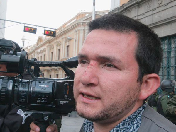 Otro agredido fue el camarógrafo de Fides TV, Alejandro Estívariz, quien sufrió un corte profundo en el rostro a causa de una piedra que fue lanzada desde las filas de la marcha del Conisur. El tercer afectado es el también camarógrafo de la red Bolivisión, Carlos Saavedra, quien tuvo fractura de tabique nasal cuando el contingente de uniformados fue rebasado por la avalancha humana.