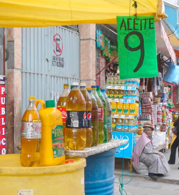 “El litro de aceite está a Bs 9,50 y a 8,50 bolivianos, rebajó un boliviano por litro, que esta situación sea una realidad depende de las negociaciones con el Ministerio de Desarrollo productivo y las fábricas del producto entre un 15% y 10%, significa uno o 1,50 bolivianos, siempre que desaparezcan los intermediarios” indicó