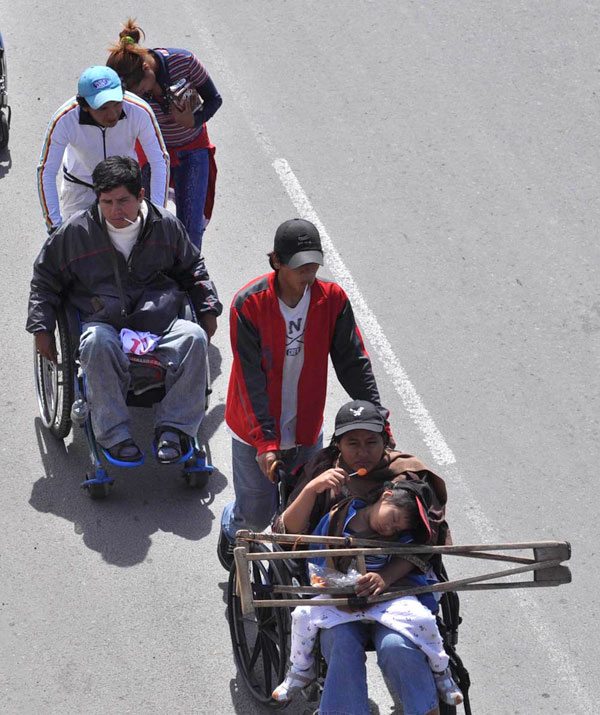 El Ejecutivo a través del Ministerio de Justicia definió ayer el pago de una renta de Bs 1.000 durante la gestión 2012 para las personas con discapacidad que ingresen en la categoría de muy graves y posteriormente, después de una evaluación, se definirá si se provee el bono solicitado por el sector. Por su lado, representantes del sector rechazaron la propuesta y anunciaron medidas de presión, como bloqueos de calles y caminos mientras la caravana de sillas de ruedas prosigue su avance a La Paz
