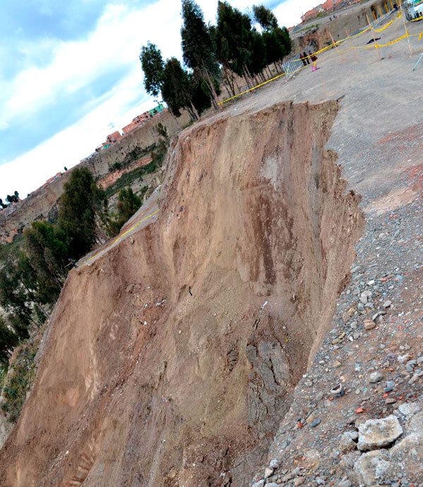 El 27 de diciembre pasado se registró el deslizamiento de una notable porción de tierra en la zona Tejada Alpacoma debido a una lluvia caída durante más de 10 horas, situación que puso en riesgo a por lo menos 15 viviendas.