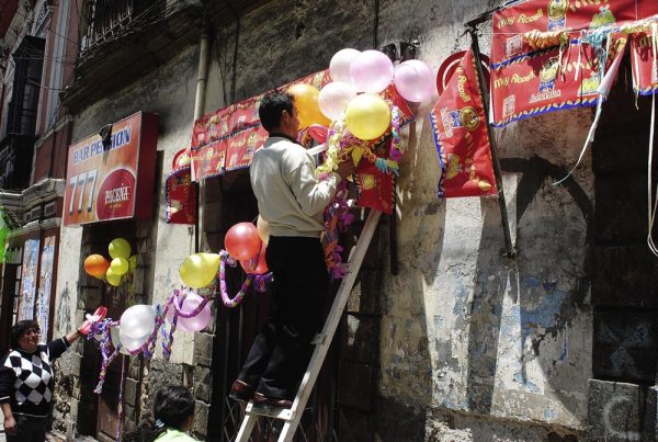 Ayer hubo derroche de cohetillos, globos, petardos y bastante bebida. La ch’alla, una de las tradiciones del occidente que expandió sus fronteras al oriente. Es una ceremonia de agradecimiento a la Pachamama por los favores recibidos y un pedido de protección para los días que vienen.