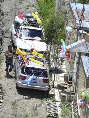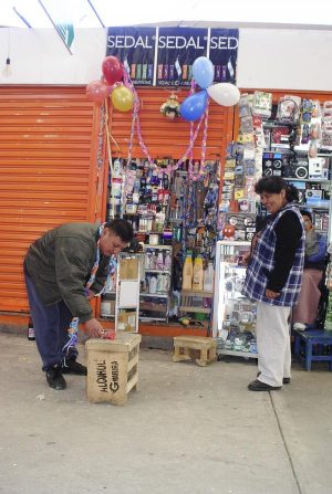 Se ch’alla (en quechua rociar) los bienes adquiridos, se echa la espumante cerveza al piso y paredes y también se rocía el vientre con la espumante cerveza que llega en cajones y termina, en muchos casos, enviando al piso a quienes pierden el equilibrio por el exceso.