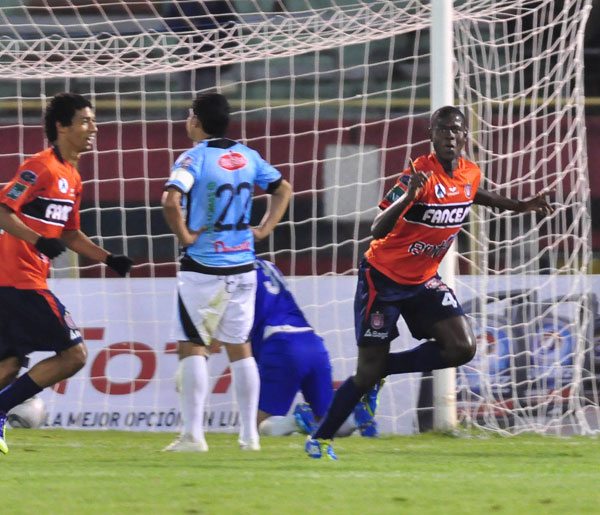 La “U” manejó el medio campo y cerró los espacios para la salida de Aurora. Ese juego dio frutos en el minuto 16 cuando Leonel Morales remató con fuerza pero el arquero Da Silva envió el esférico al corner. El tiro de esquina lo cobró Gomes, y como con la mano envió el centro a Jefferson Lopes que de cabeza y saltando por encima de toda la defensa convirtió el 1 a 0 transitorio para Universitario a los 17‘.