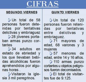 Y también incrementa el número de personas retenidas por el excesivo consumo de bebidas alcohólicas o por portar armas.