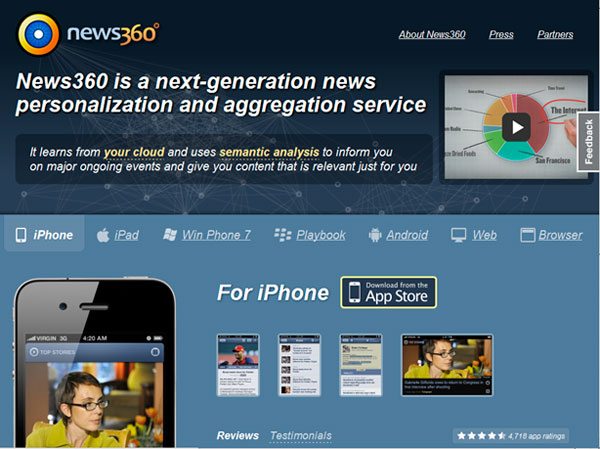 Además de las Top Stories, News360 incluye un total de 15 categorías de noticias: deportes, salud, política, negocios, etcétera... Hay que decir que, por el momento, News360 contiene solamente noticias en inglés y la mayoría de las fuentes provienen de Estados Unidos.
