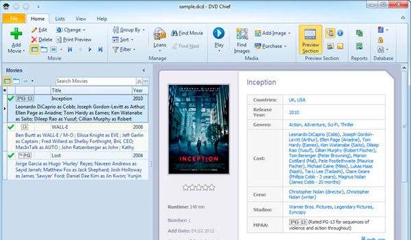 Con DVD Chief, empezar tu colección es muy fácil. Puedes buscar las películas en tu disco duro o añadirlas una a una obteniendo los datos automáticamente de IMDB, la mayor base de datos online de cine. Podrás descargar datos de los actores, del argumento, imágenes y capítulos en el caso de las series de televisión.
