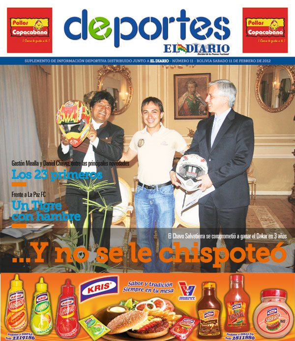Agregó que “me parece muy bien de parte de ustedes (Deportes de El Diario) que lo hayan publicado en la tapa del suplemento deportivo que es importante para que la gente sepa y conozca, mucha gente de repente no lo ha conocido y no sabía de esto, y mediante el periódico se puede llegar a otras partes que no llega la información y gracias a esa publicación se pudo informar de un deportista nuestro, un piloto boliviano que tuvo éxito en el Dakar”.