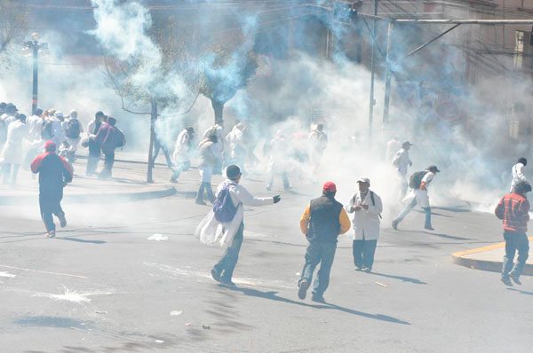 “Por ejemplo, en la pasada semana hemos visto un uso excesivo de los agentes químicos, siendo este gas lacrimógeno mucho más nocivo que los petarnos y hasta las dinamitas porque es capaz de producir un espasmo que puede generar asfixia en cualquiera que se encuentra expuesto en el lugar. Lo que pasa es que se produce el cierre de la glotis (abertura anterior de la laringe), provocando arcadas, vómitos y finalmente la asfixia de la personas en caso de que sean alérgicos o si no se actúa de manera inmediata”, advirtió el entrevistado.