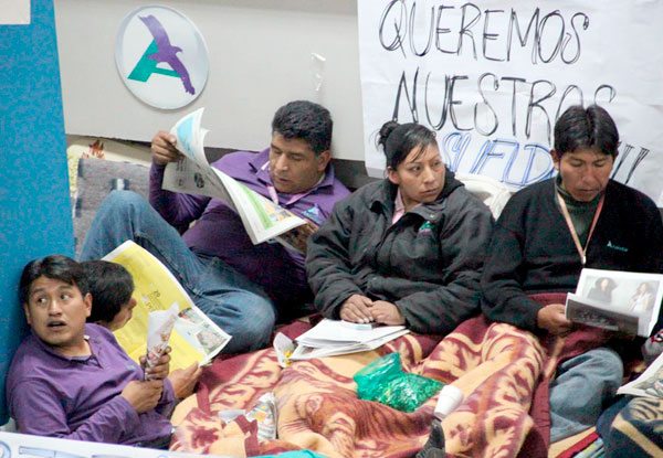 “AeroSur cuenta con aproximadamente 1.200 empleados y estamos decididos a entrar en una huelga de hambre para mantener nuestras fuentes laborales. Tenemos sueldos que nos adeudan por más de tres meses. Todos los empleados están así, por ejemplo en Santa Cruz están con siete meses que no se les paga” dijo el vocero.