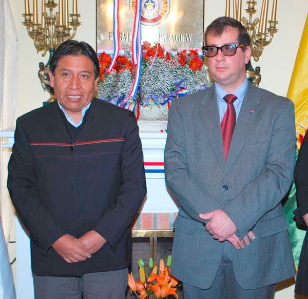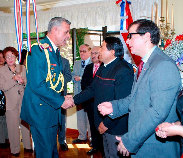 Con la presencia del canciller David Choquehuanca, el encargado de Negocios de la Embajada del Paraguay, Osvaldo Bittar, inició los actos conmemorativos de los 201 años de independencia de su país.