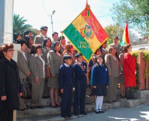 Los niños de la escuela República del Paraguay, entonaron las notas de los himnos de Bolivia y Paraguay.