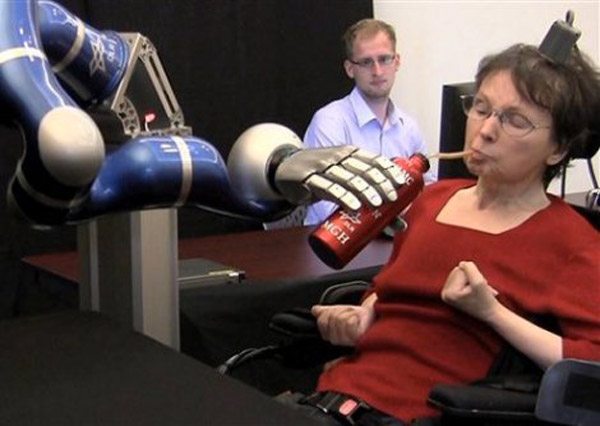 Con sólo el pensamiento, dos tetrapléjicos han sido capaces de controlar un brazo robótico para alcanzar y agarrar objetos. Un equipo internacional de investigadores ha conseguido una interfaz de sistemas neuronales que traduce la actividad del cerebro en señales de control para los dispositivos.
