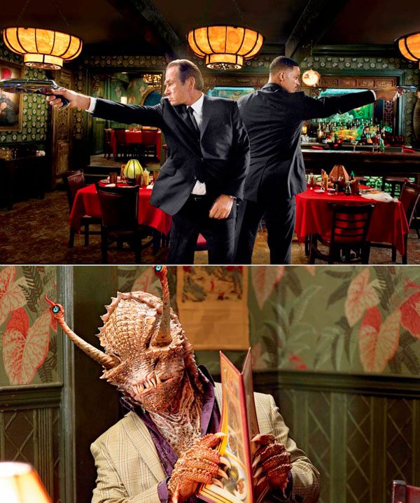 Sonnenfeld dice que la sensibilidad de Baker se funde perfectamente con el tono de “jugada directa” que él aporta al resto de la película. “No queríamos extraterrestres chocantes o locos”, comenta. “Si los alienígenas iban a ser divertidos, eso debía surgir del humor al verlos, de su actitud, o de que el público pensara, ‘Oh, qué interesante’”.