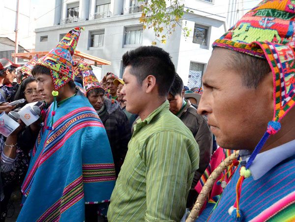 La vigilia instalada en la Plaza Mayor de San Francisco unió fuerzas entre representantes de la Confederación de Indígenas de Bolivia (Cidob) y el Consejo Nacional de Markas y Ayllus del Qullasuyu (Conamaq), que solicitaron colaboración a la sociedad citadina a fin de recibir a los cientos de marchistas de ambas causas.