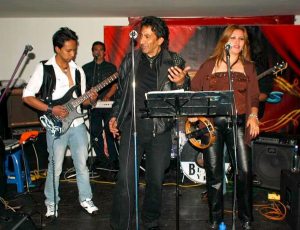 La presidenta de la Asociación, Mirlo Guerra, dio la bienvenida a los asistentes en el salón VIP, para luego invitarles a pasar a la pista, donde les esperaba un grupo de rock para amenizar la velada.