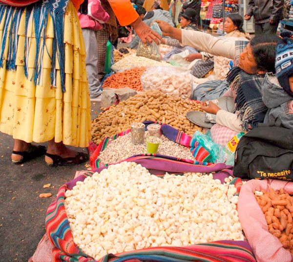 El mundo católico vive Corpus Christi. En esta celebración los bolivianos de cada región adoptan ritos propios, entre ellos el consumo de frutas, maní y masitas de todo tipo. Esta es una oportunidad para comerciantes que durante la fiesta ofrecen una variedad de productos que no suelen ser de consumo cotidiano.