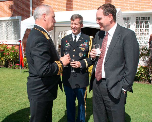 En su primera aparición ante la sociedad paceña, el diplomático ruso estuvo acompañado por el agregado militar acreditado en el país, coronel Sergey Tarasov, y su esposa María Tarasova, en el comité de bienvenida.