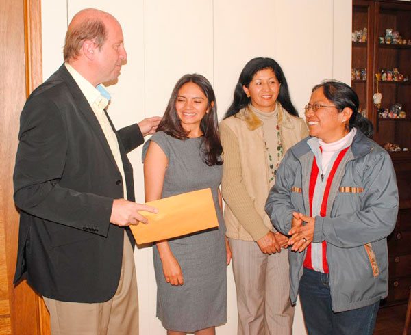 La entrega del donativo se realizó en la residencia de Rossy Arraya, durante la reunión mensual de ABIA, la misma que contó con la presencia de una de las presidentas honorarias, Claudia Denny, el presidente de la organización, Peter Cartwright, y su directiva.
