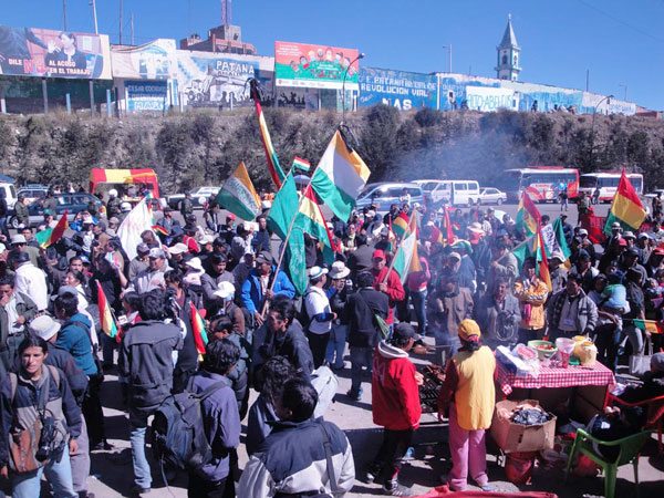 Alrededor de 500 personas se concentraron ayer en el peaje de la Autopista que une La Paz y El Alto con la finalidad de realizar un mitin de protesta apoyando las demandas de los marchistas del Territorio Indígena y Parque Nacional Isiboro Sécure (Tipnis).