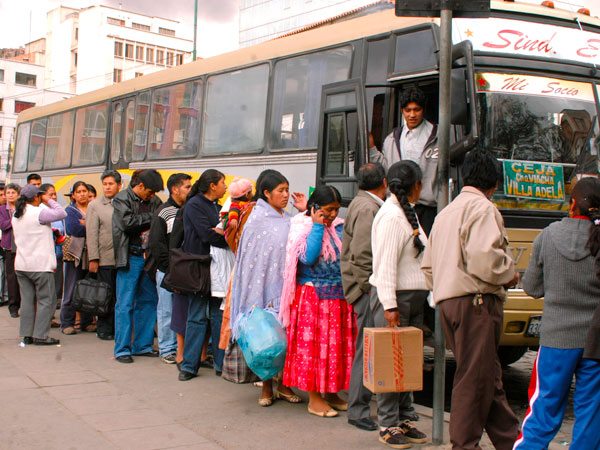 Miles de personas a diario realizaron largas colas para obtener un pasaje y abordar una flota que les permita viajar a La Paz, Cochabamba, Santa Cruz, Potosí y otras ciudades del interior del país. Las flotas se encuentran paradas en los alrededores de la terminal y los voceadores de pasajes están expuestos ante los delincuentes.