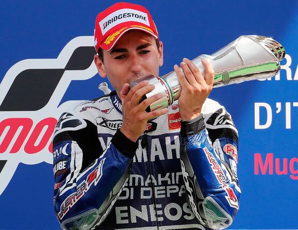 El español Jorge Lorenzo (Yamaha YZR M 1) consiguió su quinta victoria de la temporada al ganar el Gran Premio de Italia de MotoGP que se disputó en el circuito de Mugello.