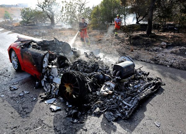 El incendio, según explicaron las mismas fuentes, se produjo espontáneamente y sin que hubiese un accidente de por medio con el Ferrari que Banega estrenó en la mañana de ayer.