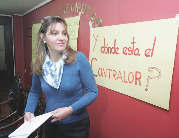 La legisladora por el departamento de La Paz protestó porque cada día se amanece con denuncias de corrupción en las empresas públicas del Estado y el Contralor General no inicia ninguna acción para investigar y sancionar estos casos, además de convertirse, según la diputada en una autoridad “prácticamente invisible”.