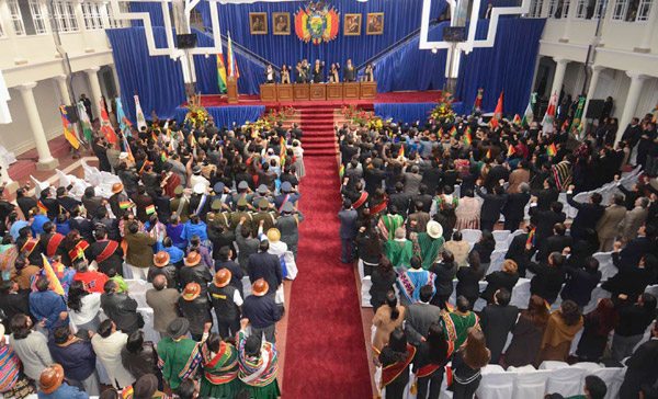 La presidenta del Senado Nacional, Gabriela Montaño, y la presidenta de la Cámara de Diputados, Rebeca Delgado, estaban en los principales actos, junto a los ministros de Estado.