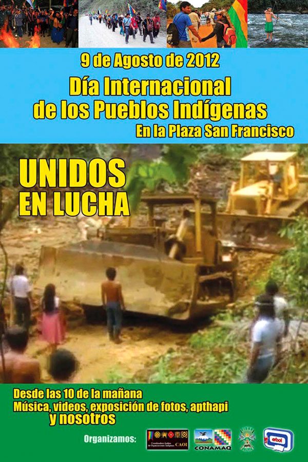 Esta institución, cuyo representante es el dirigente Rafael Quispe, viene acompañando la lucha de los pueblos indígenas de Tierras Bajas en el caso del Tipnis y la construcción de la carretera Villa Tunari – San Ignacio de Moxos.