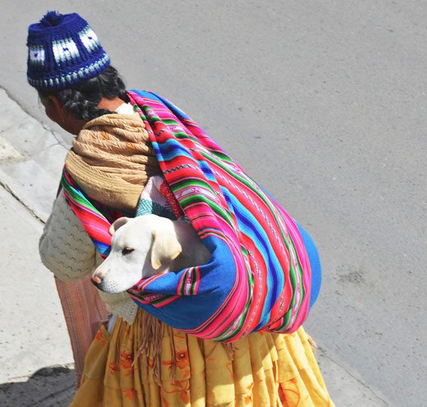 La señora Francisca Mamani, llevaba en su espalda a su perrita Peka, quien se encontraba delicada de salud y había sido sometida a una cirugía de esterilización.