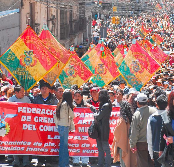 “Nosotros queremos aclarar que nuestros compañeros que trabajan en tarimas, no pagan el capital que libera el régimen simplificado, que son menos de 12.000 bolivianos, muchos afiliados tienen menos de 2.000 bolivianos de capital, estamos hablando de los puestos de venta que nada tienen que ver, están liberados y exentos por el régimen simplificado”, declaró a El Diario el secretario ejecutivo de la Federación de Gremiales de La Paz, Zenón Yupanqui.