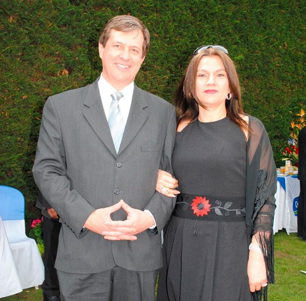 El embajador de la República Oriental del Uruguay, Carlos Flanagan, y su esposa, Adelaida Eva Marín, celebraron el centésimo octagésimo séptimo aniversario de la Independencia de su país, en los jardines de la residencia diplomática uruguaya, en Calacoto.