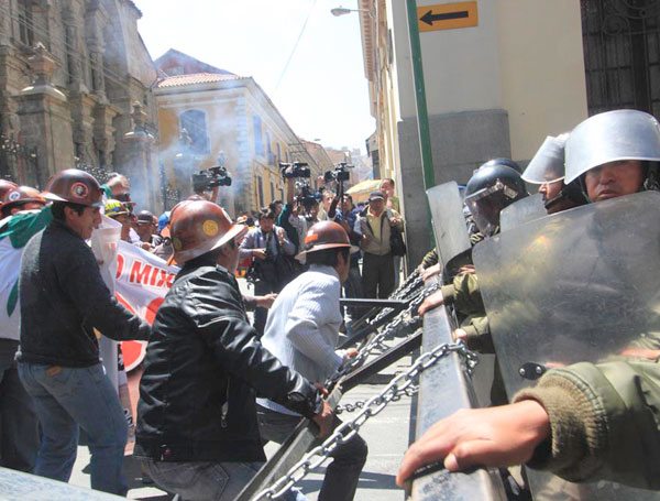 Los enfrentamientos entre los mineros asalariados de Colquiri y los efectivos policiales provocaron un verdadero caos. Varias personas quedaron afectadas por los gases lacrimógenos utilizados por las fuerzas del orden, en su intento neutralizar la protesta de este sector minero que demanda al Ejecutivo la nacionalización de la “Veta El Rosario”, donde se encuentra un importante yacimiento de estaño.