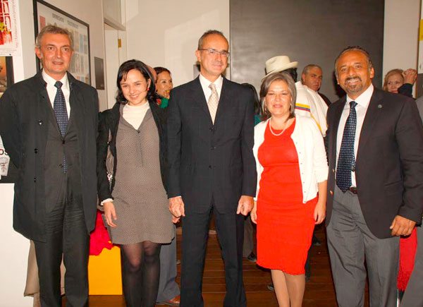 El embajador de Italia, Luigi De Chiara; María Pérez, directora del Centro Cultural de España en La Paz; los embajadores de España, Ángel Vásquez, y Colombia, Martha Cecilia Pinilla, junto al representante de la ONUDC, César Guedes.