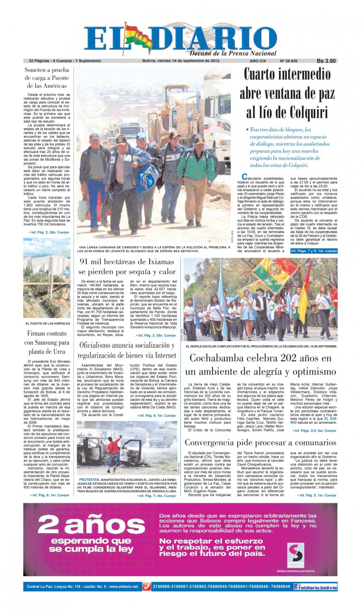 Benjamín Cruz, minero cooperativista de 32 años de edad, fue internado ayer en el Hospital Corazón de Jesús del Kenko, a causa de la pérdida de uno de sus ojos, por la manipulación inapropiada de una dinamita, que explosionó en sus manos...