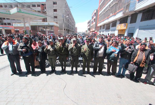 Por tal motivo, la Comuna organizó un acto para efectuar la posesión del Consejo de Seguridad Ciudadana de la Ciudad de El Alto, mismo que se realizó en la puerta de la Alcaldía Central.