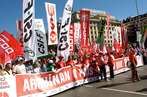En los discursos finales, los secretarios generales de los dos principales sindicatos españoles, Cándido Méndez, de UGT, e Ignacio Fernández Toxo, de CCOO, pidieron al presidente del Gobierno español que no pierda la oportunidad de escuchar a los ciudadanos que rechazan sus recortes y le avisaron de que tiene la “llave” para evitar una nueva huelga general.