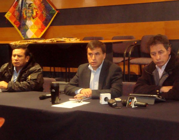 El Gobierno, a través del viceministro Jorge Pérez y el ministro de la Presidencia, Juan Ramón Quintana, intenta reunir a ambas partes y a las 23.00 de anoche pidió 48 horas de tregua a asalariados y cooperativistas.