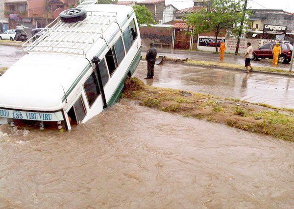 El coronel Argandoña en informes preliminares manifestó que el vehículo cayó en un canal de drenaje, debido a que las calles se encontraban intransitables, puesto que la lluvia habría caído en el lugar desde las cuatro de la madrugada del miércoles. .