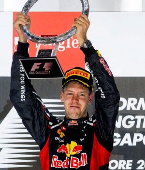 Sebastian Vettel (Red Bull) se adjudicó con autoridad la victoria en el circuito nocturno del GP de Singapur, donde el español Fernando Alonso (Ferrari) subió al tercer cajón del podio y alejó de la lucha por el título a uno de sus mayores enemigos, el británico Lewis Hamilton (McLaren), que tuvo que abandonar por avería.