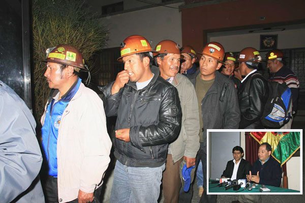 Ambos grupos de representantes no disimularon su enojo y se mostraron poco dispuestos al diálogo con los miembros de la prensa que cumplieron una larga vigilia junto a mineros cooperativistas que se encontraba en las inmediaciones.