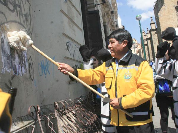 “Queremos que ustedes nos ayuden y la población paceña en el futuro, no echen la basura en las calles, que no grafiteen. Pedir que no sea solamente hoy, que hagamos la limpieza todo el tiempo, que la ciudad esté limpia y para ello necesitemos el apoyo de todos, para que la ciudad esté limpia”, dijo.