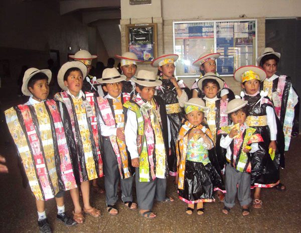 “El objetivo es coadyuvar a la formación integral de nuestros beneficiarios, en una actividad de tipo cultural, en la que desarrollen sus habilidades motoras, sociales y culturales que implican la presentación de la danza en material reciclaje y la monografía con la reseña historia de la misma”, según informes de la encargada del programa Pennt II Paula Mamani.
