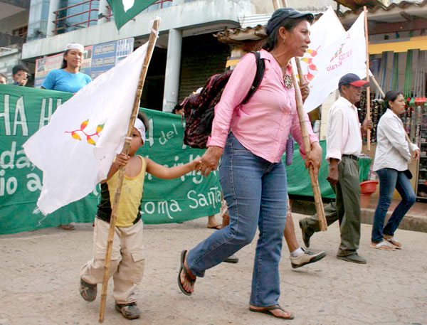 Durante la entrega de materiales en la comunidad de Santo Domingo y con la presencia de la presidenta en ejercicio, Gabriela Montaño, las autoridades del Ejecutivo aprovecharon la oportunidad para hablar de la consulta y descalificar una vez más a la dirigencia indígena de la octava y novena marcha.