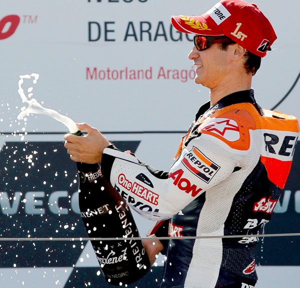 El español Dani Pedrosa (Honda RC 213 V) sentenció su cuarta victoria de la temporada antes de cumplirse el ecuador del Gran Premio de Aragón de MotoGP que se disputó en el circuito Motorland Aragón de Alcañiz (Teruel).