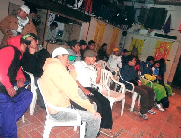 “Nosotros no tenemos propiedad sobre los grupos, las actividades que vienen a realizarse aquí ‘no son parte de’. Wayna Tambo es un espacio donde la gente realiza sus actividades, sus presentaciones. En algunos casos, como el hip hop es un movimiento relativamente nuevo, nuestro vínculo es fruto de un taller que brindó Marraqueta Blindada, y fruto del taller se convirtió en un programa de radio, a nosotros nos interesaba fortalecer los movimientos alternativos. Todo se originó con un movimiento, lo que hoy se conoce como hip hop y además salió un disco, no es que haya una instancia organizativa que nuclee” aclaró Callejas.