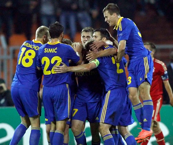 El equipo de Múnich llegó a tener una posesión de balón de hasta el 80 por ciento en los primeros cuarenta y cinco minutos, atacando y metiendo un balón tras otro al área, y buscó sin éxito hasta el final, a pesar de los dos goles del Bate y el tercero, obra de Mozolevski en el descuento.