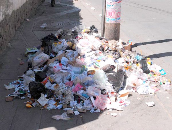 En La Paz se maneja cerca de 200 mil bolsas, sólo en la compra matutina. Mencionó que este acumulo se debe a que la ciudadanía usa excesivamente bolsas plásticas, para cualquier compra, lo que a su juicio genera grades problemas de contaminación.